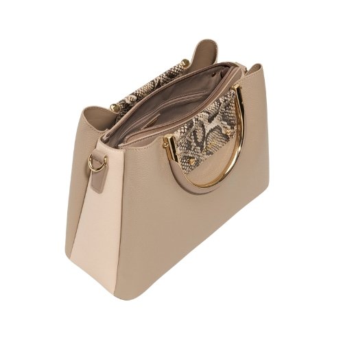 Discover effortless sophistication with the Women’s Structured Top-Handle Satchel – Sloanaa Beige, designed for women who want versatility, elegance, and everyday practicality. Its arc-shaped gold handles crown the smooth pebble-grain exterior, delivering a refined, high-end look. A snakeskin-accent panel adds a bold modern detail, giving the bag a stylish edge that stands out without overpowering your outfit.